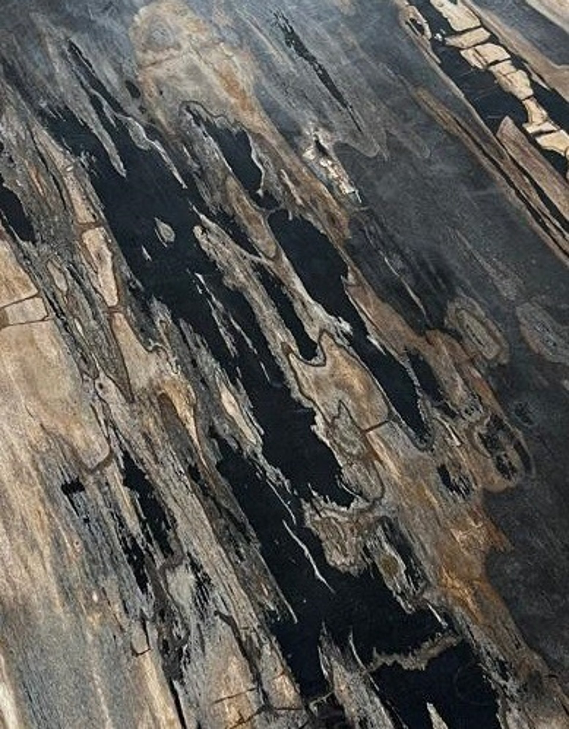 Each curve and fracture tells the story of ancient forests preserved through millennia — merging raw earth with human stillness.