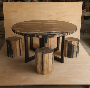 Crafted from ancient wood turned to stone, this petrified wood table set embodies both permanence and design harmony.