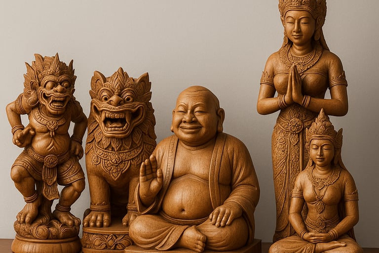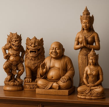 These sculptures radiate warmth and serenity — embodying cultural heritage through detailed craftsmanship and balanced form.