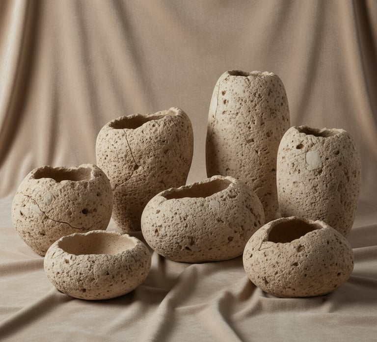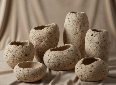 Inspired by vessels of forgotten civilizations, they stand as silent guardians of beauty — once meant to hold oil and wine, now vessels of spirit and memory. Between shadow and light, they embody the sacred dialogue between earth and human hands.