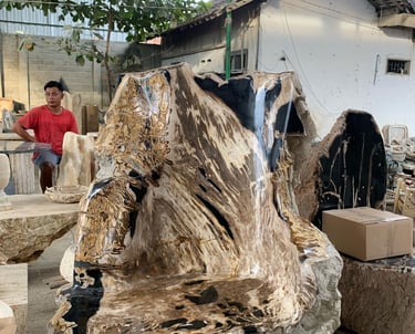Formed from the silent patience of millennia, these petrified wood vessels hold the essence of ancient forests — once alive, now immortalized in stone. Each basin reveals a dialogue between decay and endurance, where time has etched its sacred patterns into every curve and crevice. Polished interiors mirror water’s eternal flow, while rugged exteriors retain the raw memory of the earth’s breath. They are relics of transformation — altars of nature’s quiet alchemy, where wood becomes stone, and function becomes ritual.