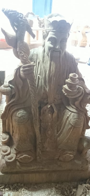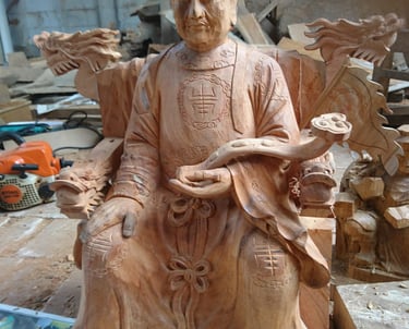Carved from the ancient heart of teak, Seraphic Grace stands as a silent hymn to serenity. Her posture radiates poise and compassion — the gesture of her hand echoing a timeless benediction. Each delicate fold and carved petal speaks of patience, ritual, and divine beauty captured in motion.